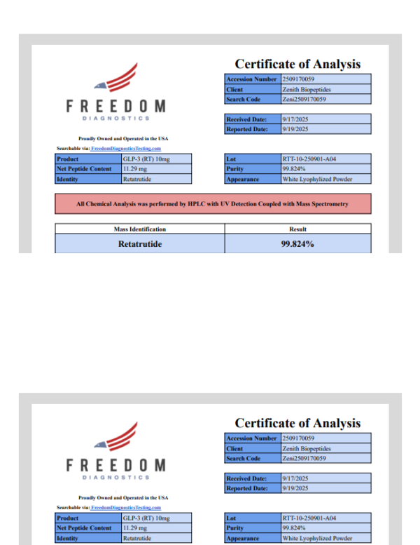 All compounds are sold for laboratory research purposes only. Not for human or veterinary use. Buyer assumes full responsibility for lawful handling and research application. Zenith Biopeptides assumes no liability for misuse, misinterpretation, or unintended application.